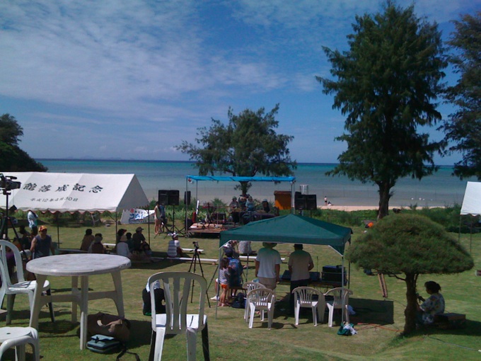 夜はおなじみパパラギ王国に宿泊。2年に一度、うちな〜ハチタイを開催している場所です。次回は来年6月の開催です。野外コンサートには最高のロケーションです。内地から見に来る価値がありますよ〜。写真は2009年の時のやつ。
