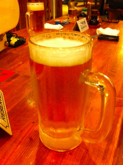 今度こそほんとに洒楽を目指す。で、着いたらもう夜の7時やん。演奏準備もそこそこに、1年ぶりの本部のみなさんとビールで乾杯!