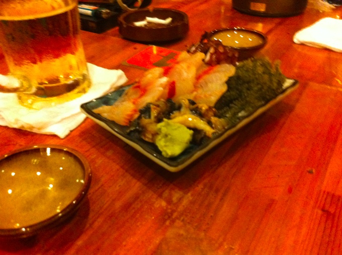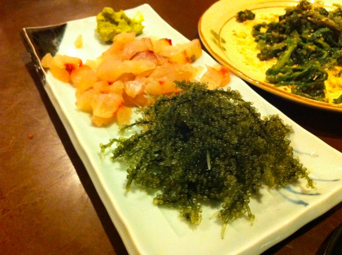 美味しい海の幸。グルクンの刺身、海ぶどう、しゃこ貝、島蛸。新鮮この上ない!!!