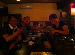 お店にいたお客さんと一緒に泡盛飲んだりして。奥の男性は数年前に名古屋から出てきて読谷村で串かつ屋さんをしてはるそうです。手前が名古屋から遊びに来たお友達。で、右がYukkoさん。