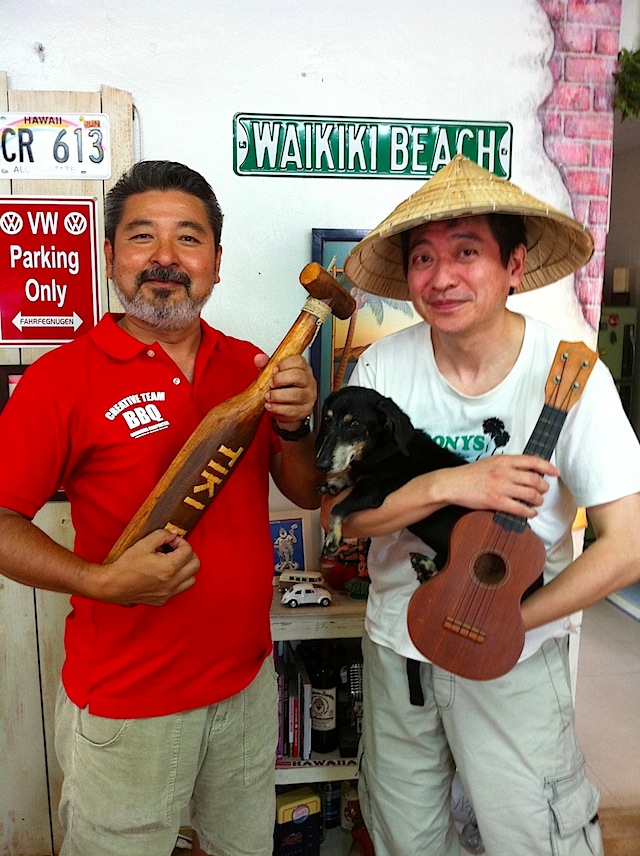 22日はライブ演奏はなく、一日オフ日。昼間は北谷方面に出かけました。長野チームがサンセットビーチでショッピングしている間に、私はTwitterで知り合いになったハイサイおじさん( @haisai023 )ことデザイナーの山城さんに会いに行ってきました。