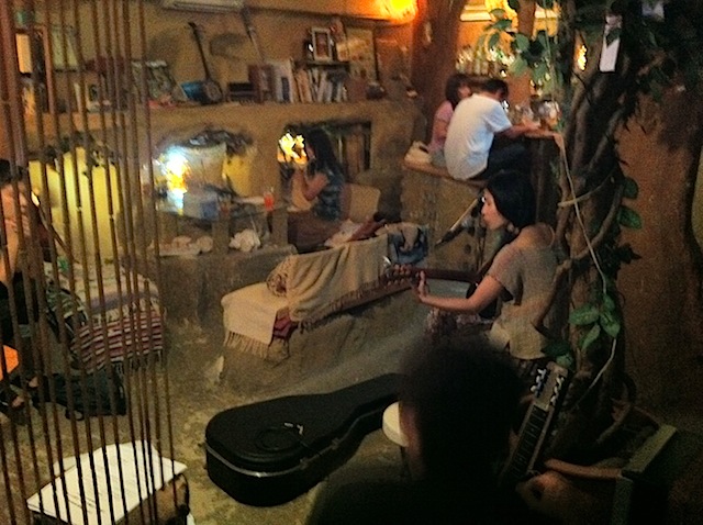 長野友美リハーサル中です。とても変わった内装のお店。左手にはスターウォーズに出てくるヨーダの家みたいな小部屋というかテーブルがあるんですけど写真撮るの忘れた。すまん。