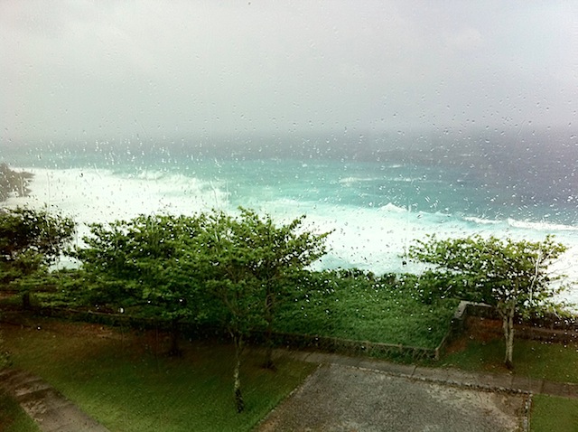 夜は南城市知念の「ポランのひろば」さんで演奏。現場に向かう前に宿泊ペンションにチェックイン。もうこの時点でかなりの暴風雨。スーパーでビールと泡盛とお刺身とおつまみを買って夜に備え、現場に出動したのでありました。