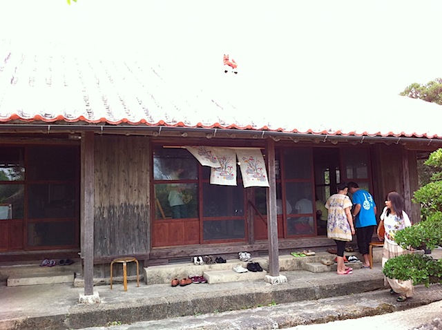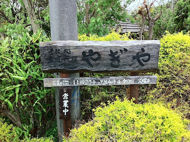 24日の演奏場所は沖縄南部の南城市。台風5号メアリーが沖縄本島に近づく中、我々、西沢長野班は南を目指す。道中、一番最初に出会した沖縄そば屋に入ろうということになって、めっけた国道沿いの小さな看板、というか道しるべ。誘われるように細い脇道に入っていくと、ありましたありました。その名も「やぎや」さん。