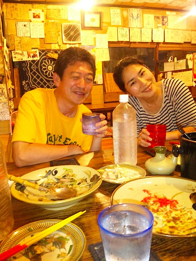 ここでもりべさんワインで撃沈。藍田くんは明日那覇を出発ということで二人は離脱。私と長野はさらに宿泊ホテルの向かいにある沖縄料理屋でマンドリン生徒さんらと合流して泡盛で乾杯。