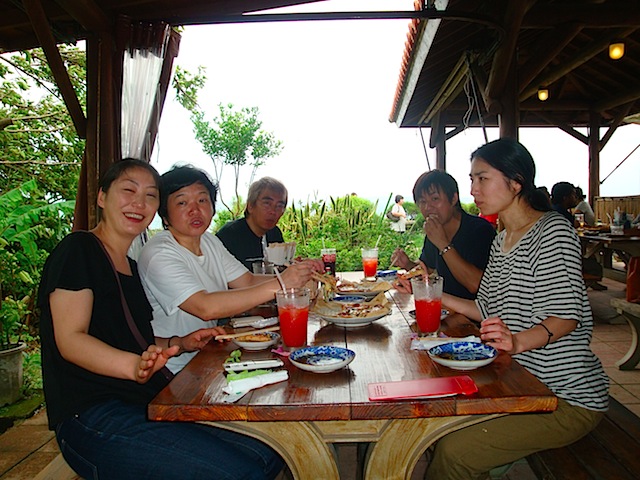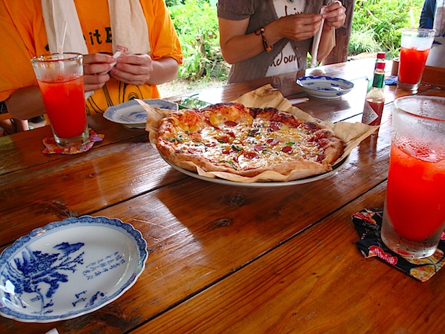 27日、うちなーハチタイ翌日。みんなで本部のピザ屋さん、花人逢にピザを食べに行きました。