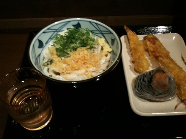 時間まで街をぶらぶらしてたら、丸亀製麺発見。